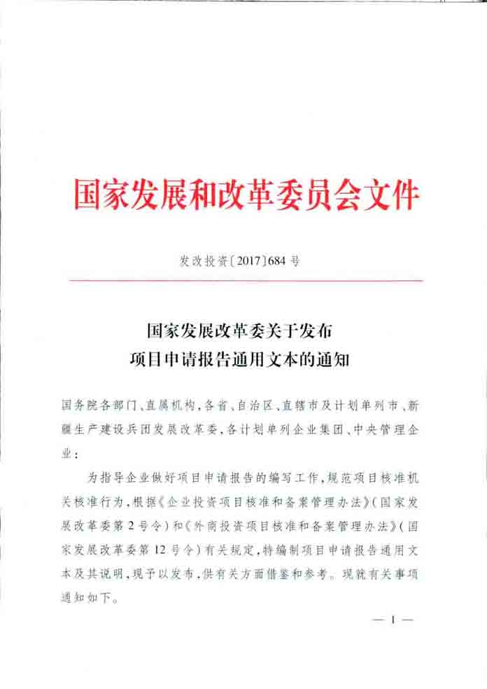 國家發(fā)改委關(guān)于發(fā)布項(xiàng)目申請報(bào)告通用文本的通知
